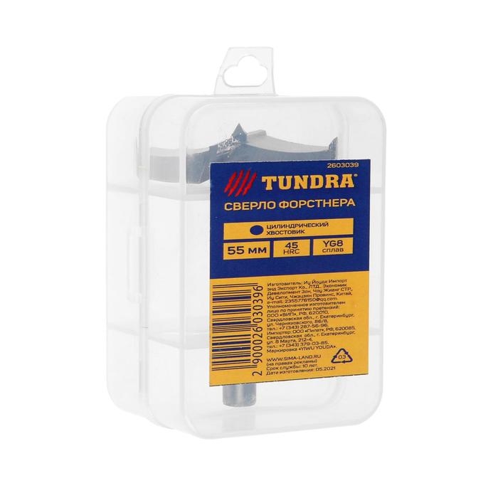 Сверло Форстнера ТУНДРА, твердосплавные пластины, цилиндрический хвостовик, 55 мм