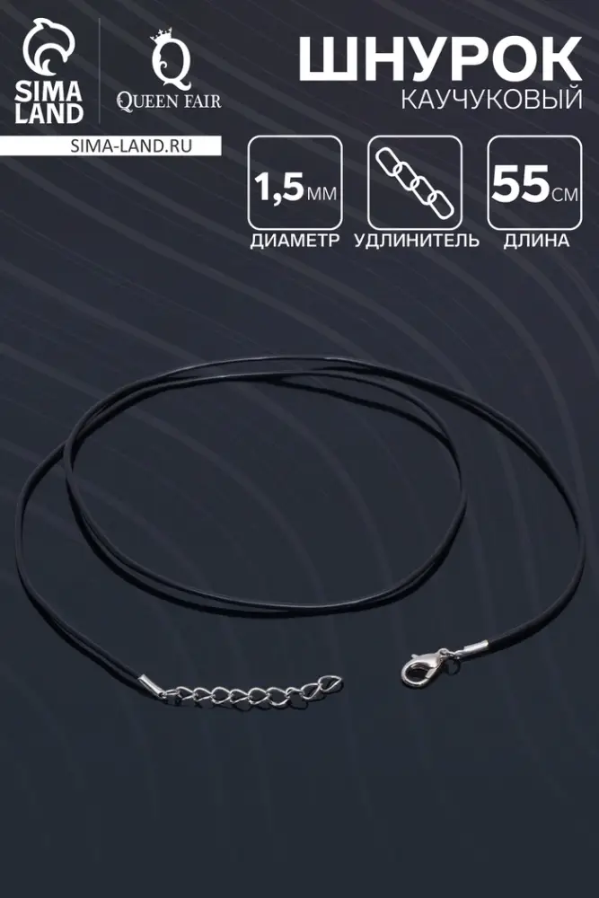 Шнурок каучуковый, неполый, 55 см, d=1.5 мм, чёрный в серебре