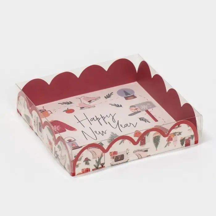Коробка для кондитерских изделий с PVC крышкой «Зимние каникулы», 13 х 13 х 3 см