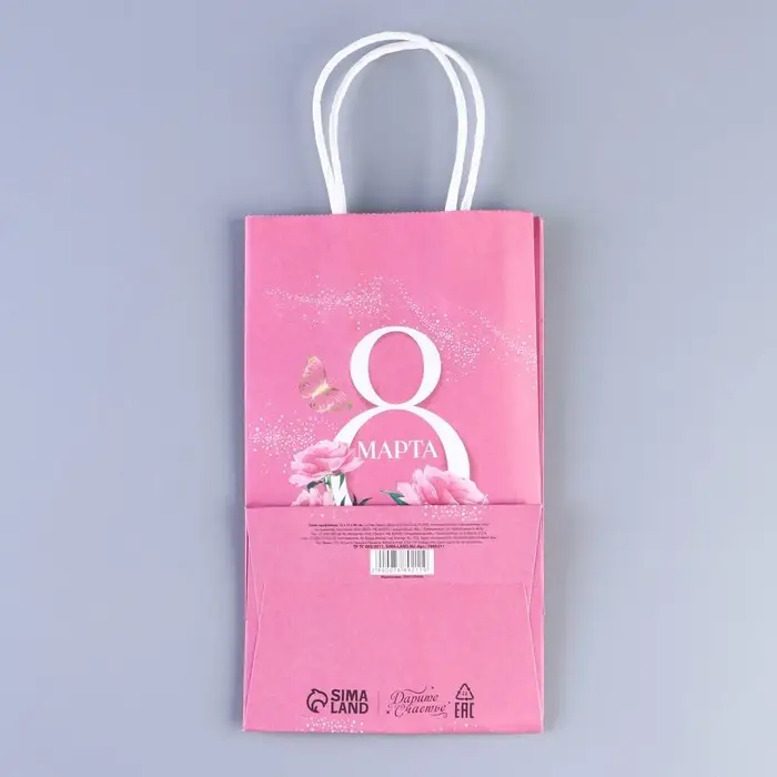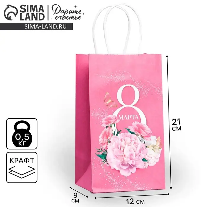 Пакет подарочный крафтовый, упаковка, «8 марта», 12 х 21 х 9 см