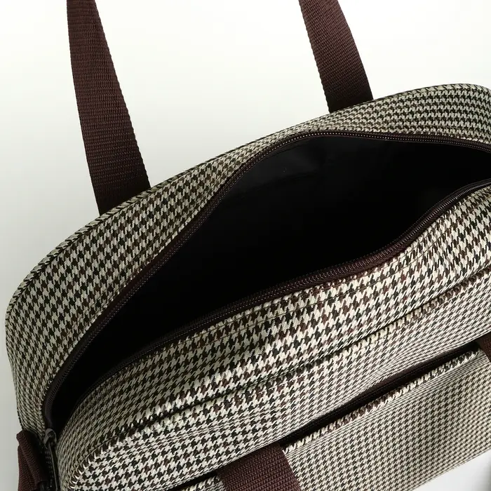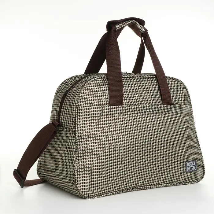 Сумка дорожная на молнии, наружный карман, длинный ремень, цвет бежевый/коричневый