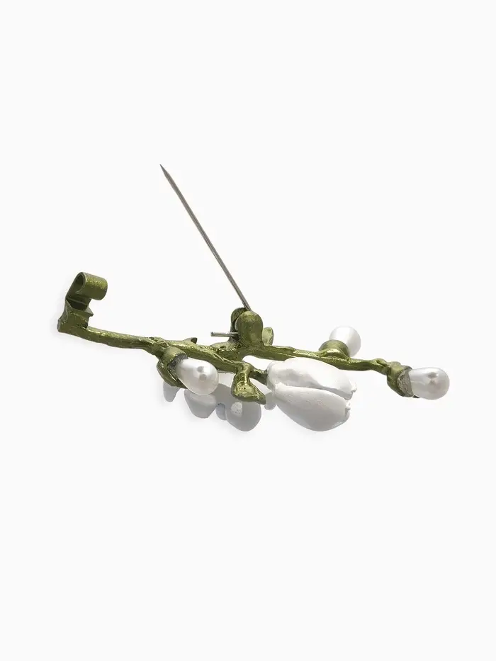 Брошь "Веточка магнолии" цветок, с эмалью, цветная