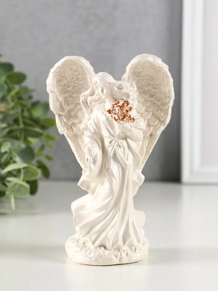 Фигура гипс "Ангел с крыльями" 15х7 см, перламутр