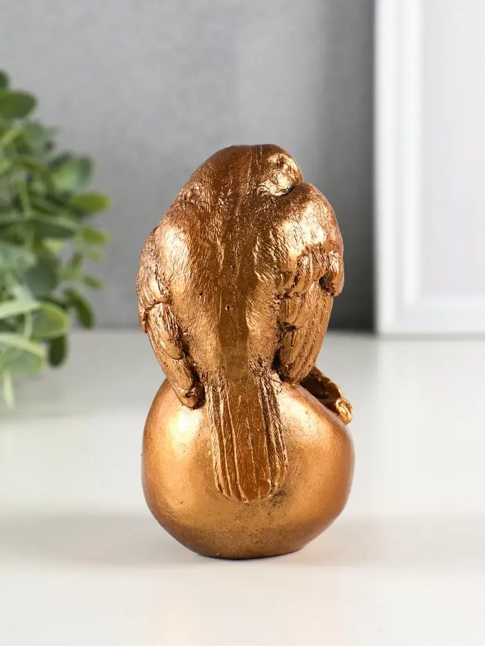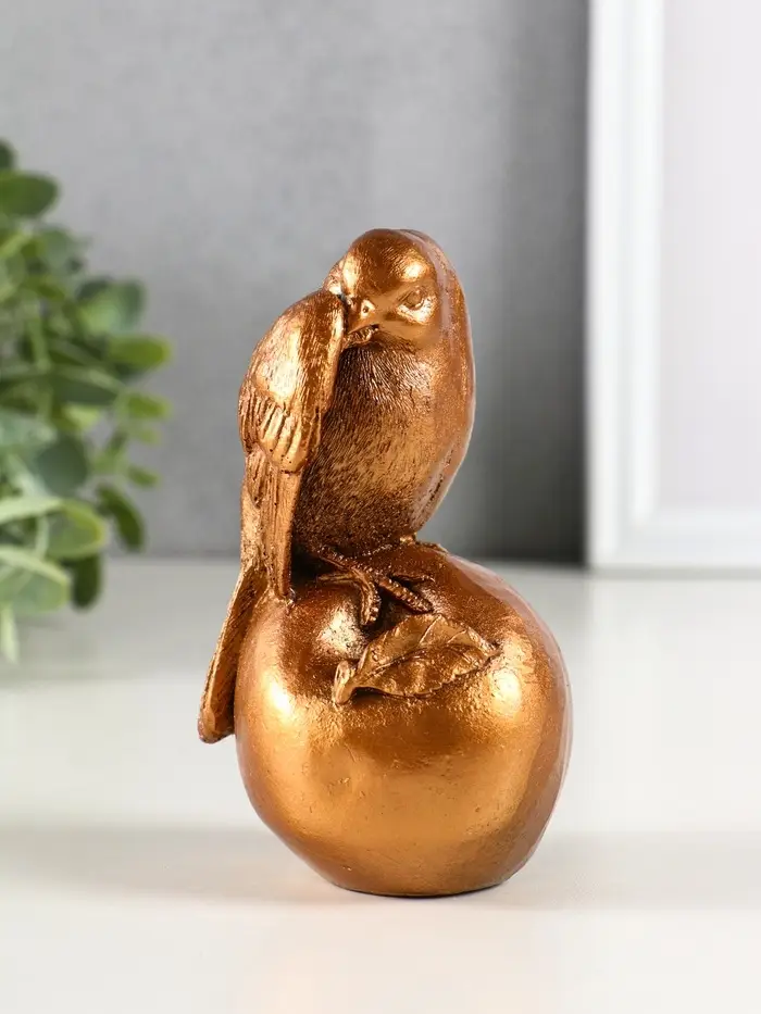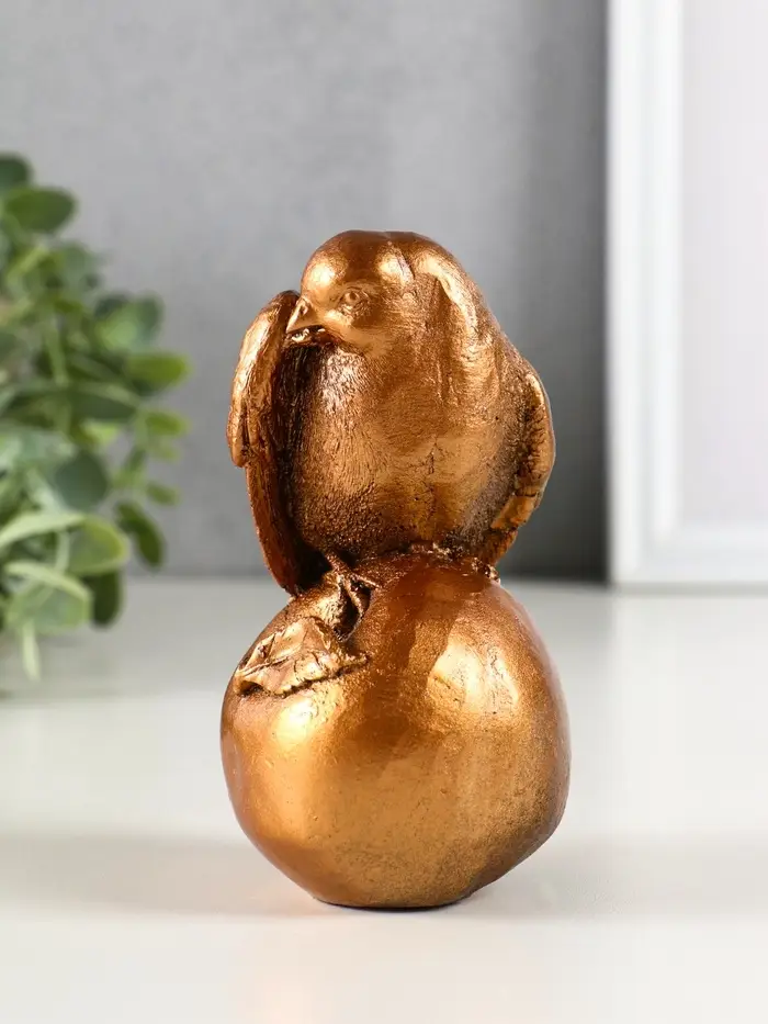 Фигура гипс "Птица на яблоке" высота 13 см, бронза