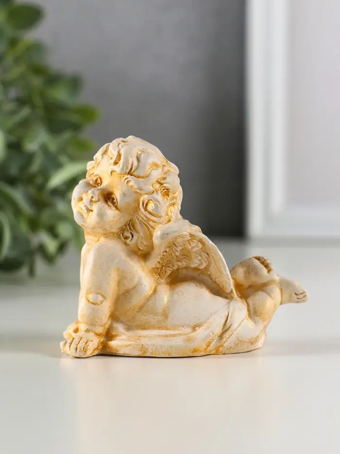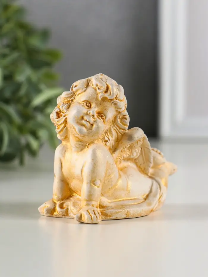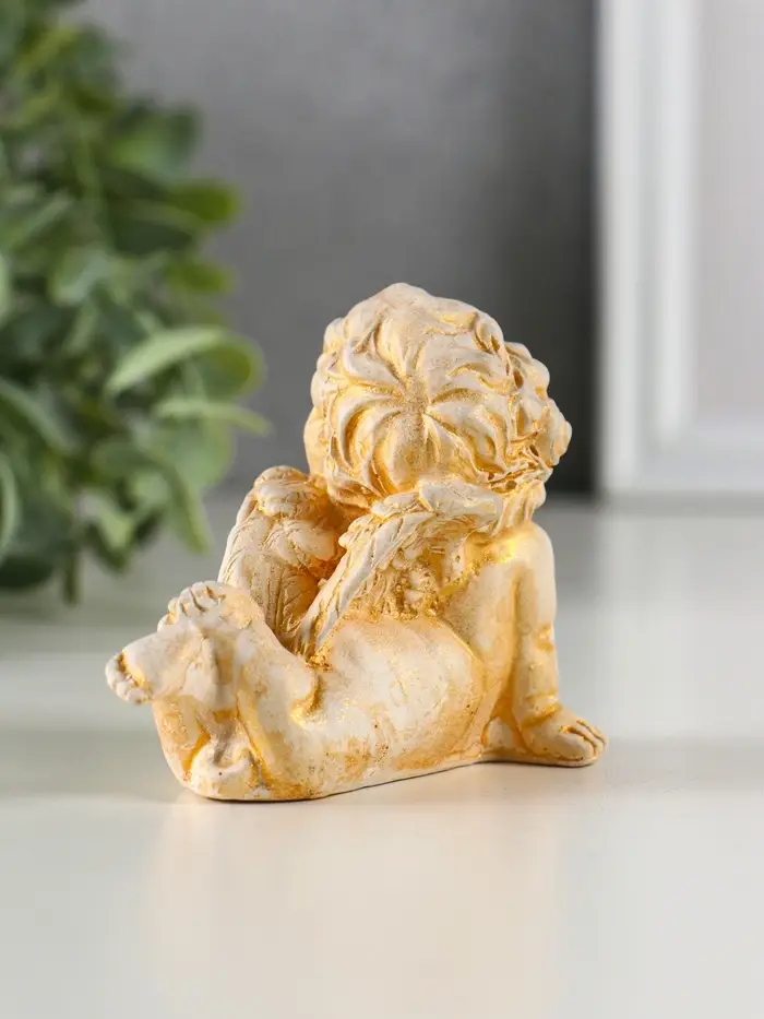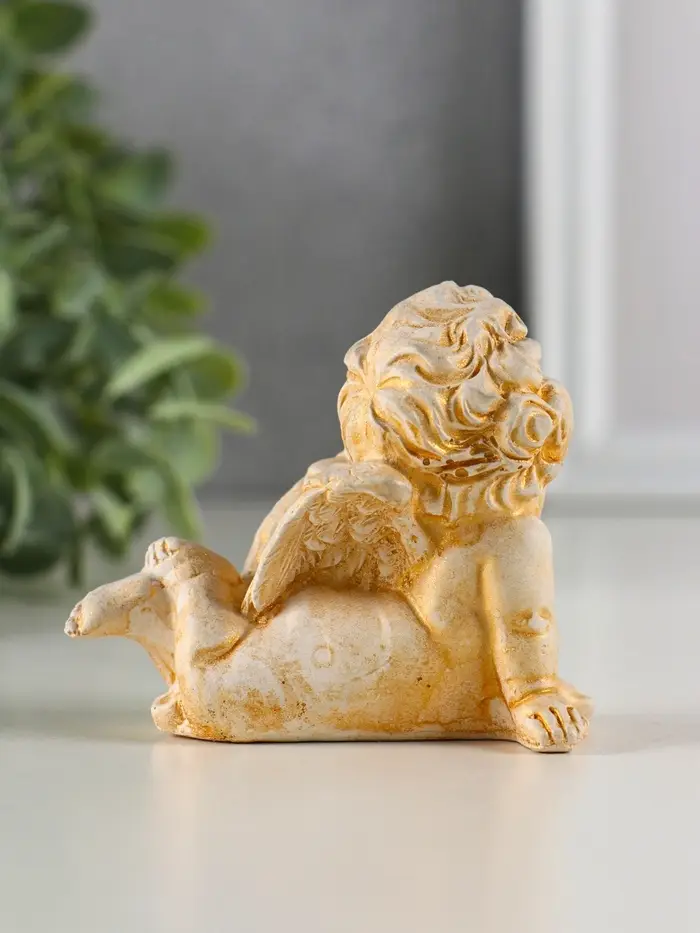 Фигура гипс "Ангел на животе лежит" 6х8 см, позолота