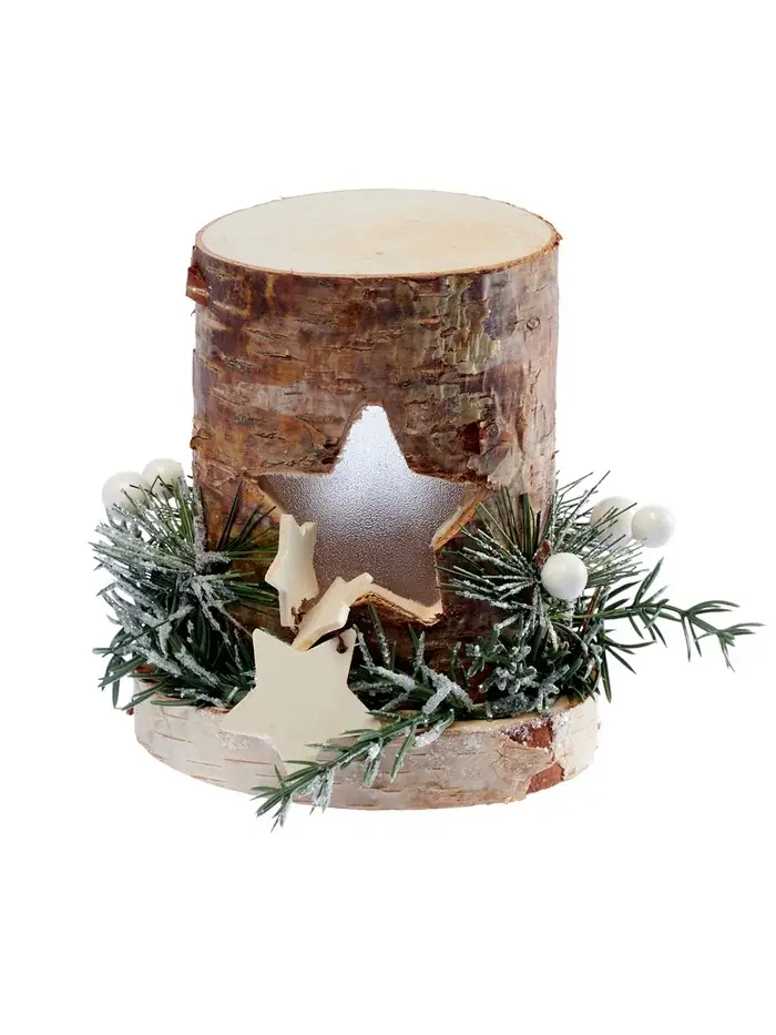 Светодиодная фигура деревянная «Декоративный пень», 1 LED, от батареек AAAx2, свечение тёплое белое