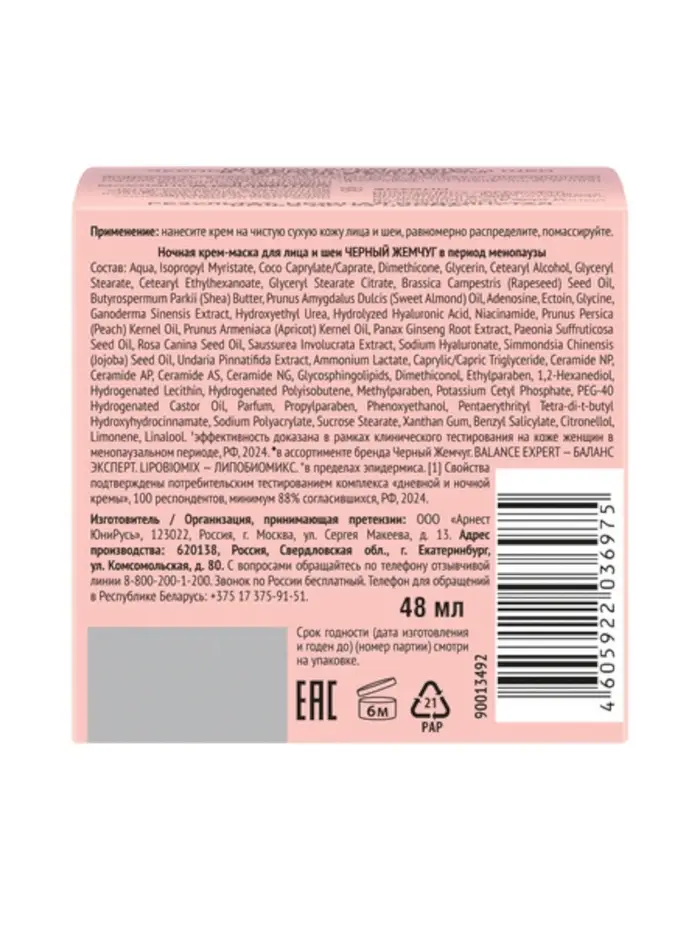 Крем-маска для лица и шеи ночной "Черный жемчуг" в период менопаузы Р2, 48 мл