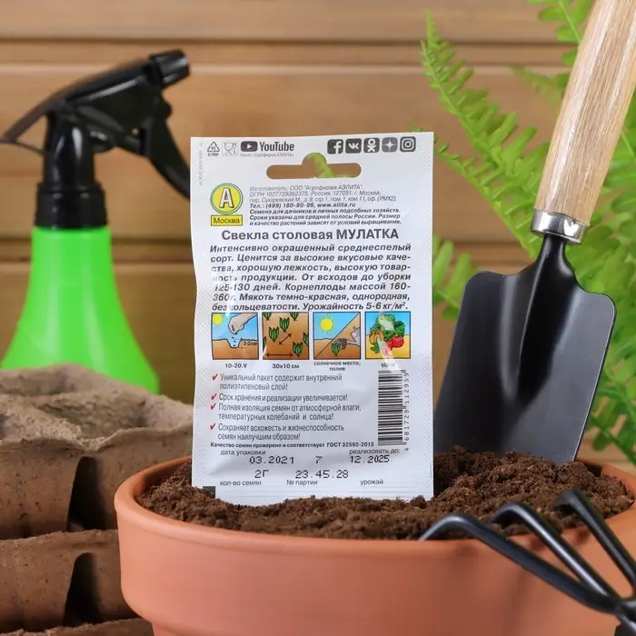 Благодаря внутреннему полиэтиленовому слою пакет не пропускает влагу и увеличивает срок годности семян до 2 лет.