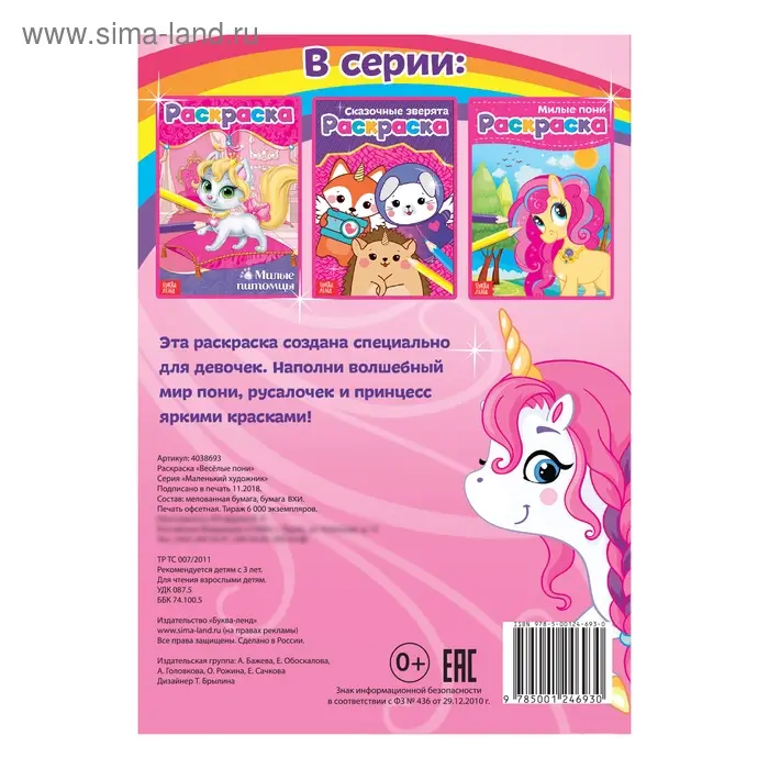 Раскраска для девочек «Весёлые пони», А5, 12 стр.