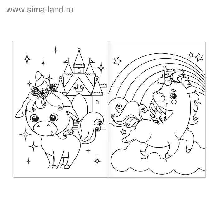 Раскраска создана специально для маленьких принцесс, которым нравятся сказочные животные и волшебные феи.