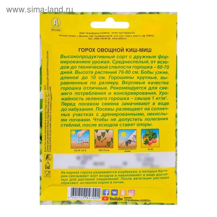 Семена Горох овощной "Оконный малыш", ц/п, 10 шт
