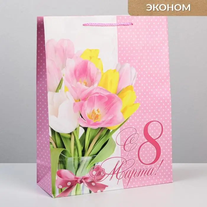 Пакет подарочный ламинированный, упаковка, «8 марта», L 31 х 40 х 11.5 см