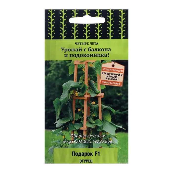 Вкусные, хрустящие огурчики с Вашего балкона. Раннеспелый гибрид не требует опыления. В плодоношение вступает через 38-39 дней после появления всходов. Плети короткие 90-150 см. Плоды удлинённо-цилиндрической формы, крупнобугорчатые, белошипые, тёмно-зелёные, длиной 13-15 см. Прекрасно подходит для выращивания в контейнерах на небольшой шпалере на лоджии и балконе, рекомендуемая ёмкость для одного растения не менее 8 л.