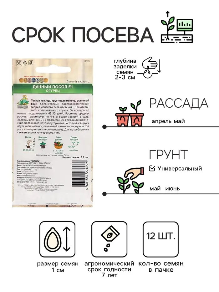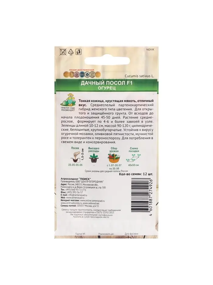 Семена огурца "Дачный Посол", F1, 12 шт.