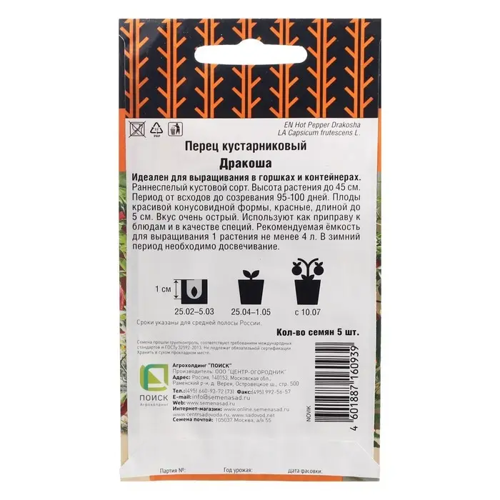 Семена Перец кустарниковый "Дракоша", 5 шт