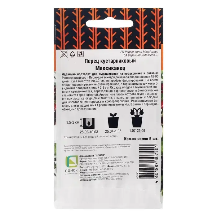 Семена Перец кустарниковый "Мексиканец", 5 шт