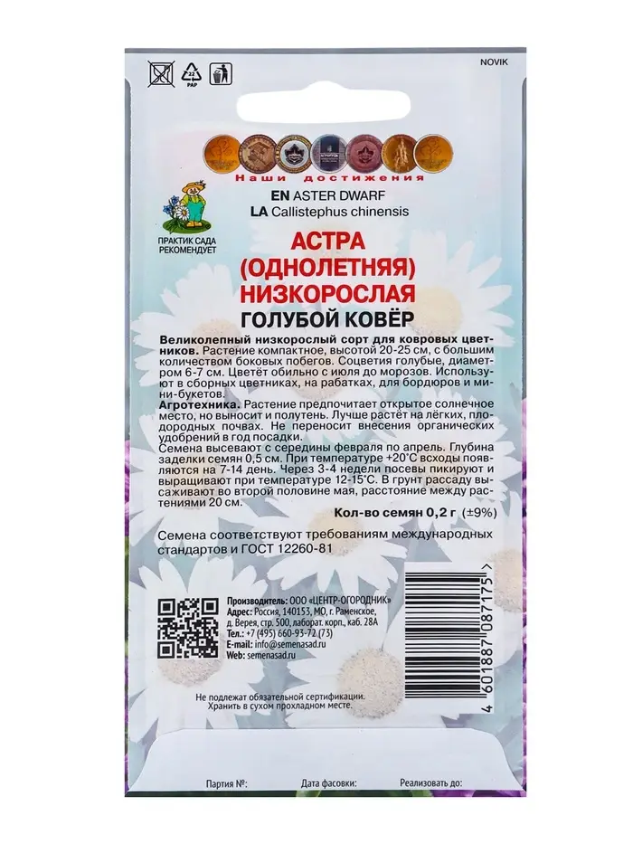 Астра низкорослая Голубой ковёр, 0,2г Поиск