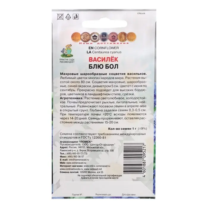 Семена цветов Василек "Блю бол", 1 г