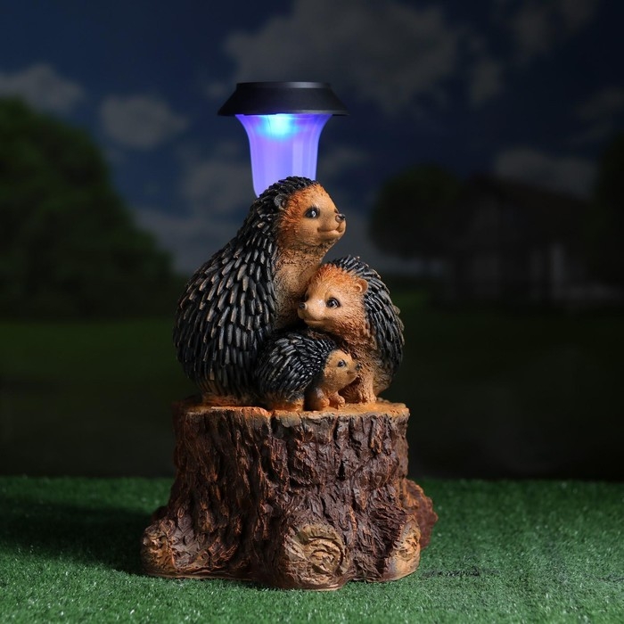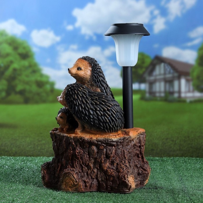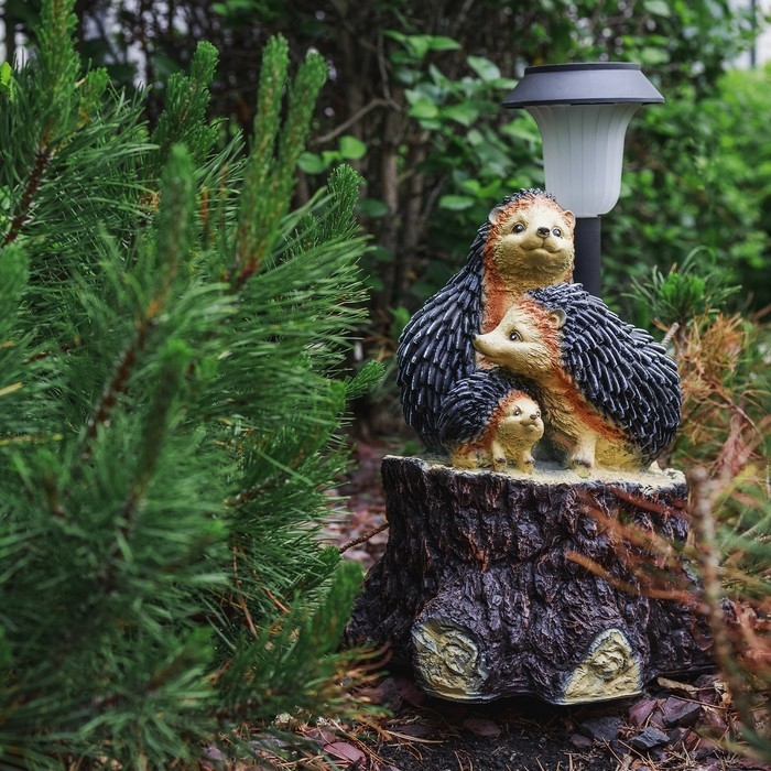 Садовый фонарь "Три ежа на пне с фонарем" 34х26см