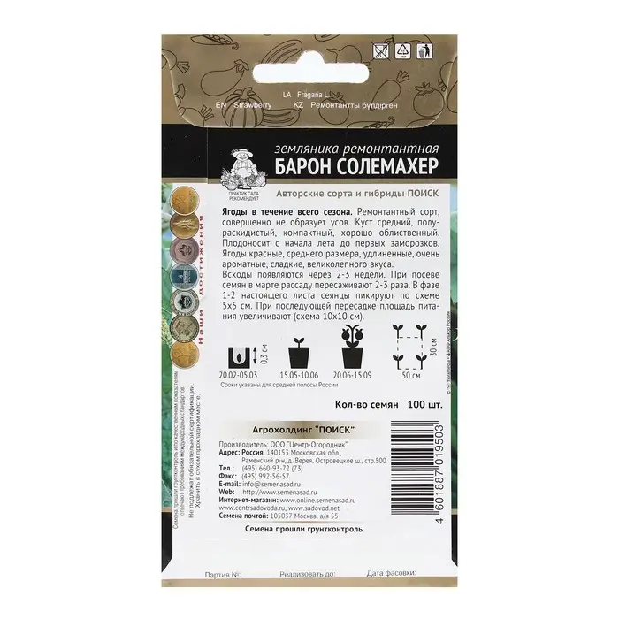 Семена Земляника "Барон Солемахер" ремонтантная, 0,04 г
