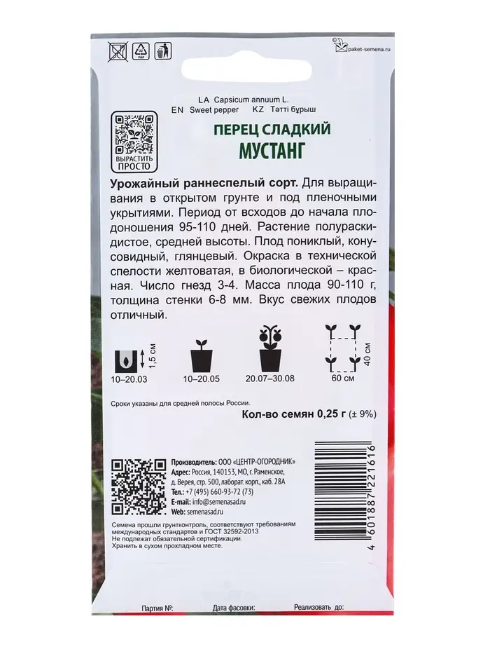 Семена Перец сладкий "Мустанг" 0,25 г