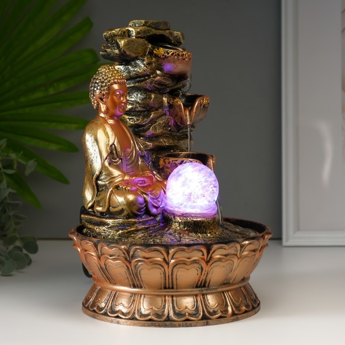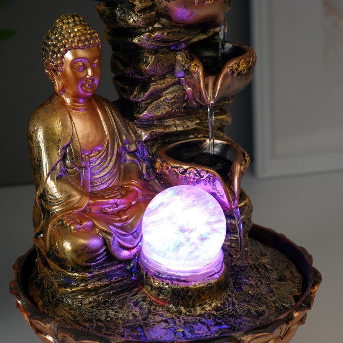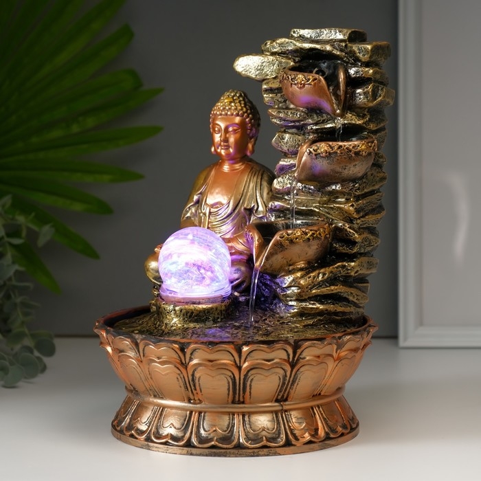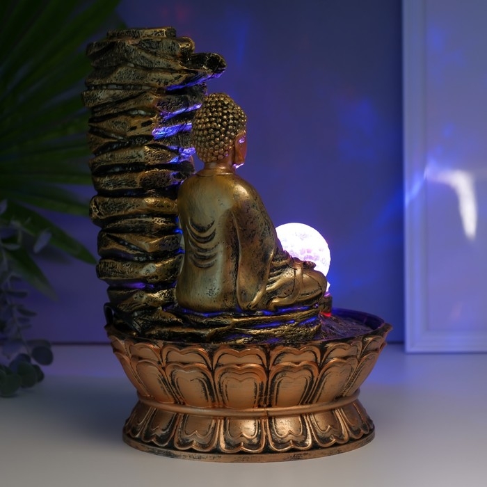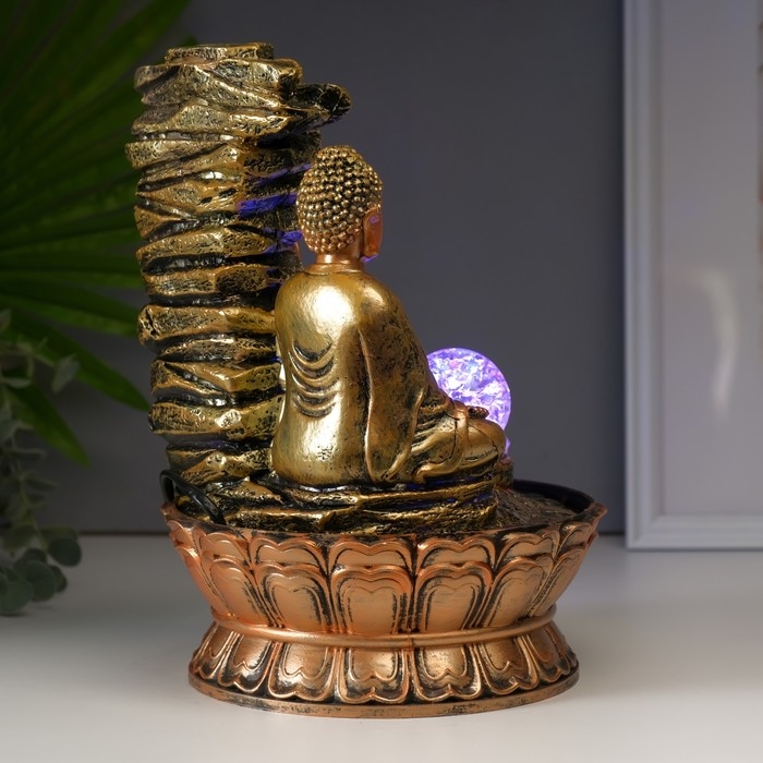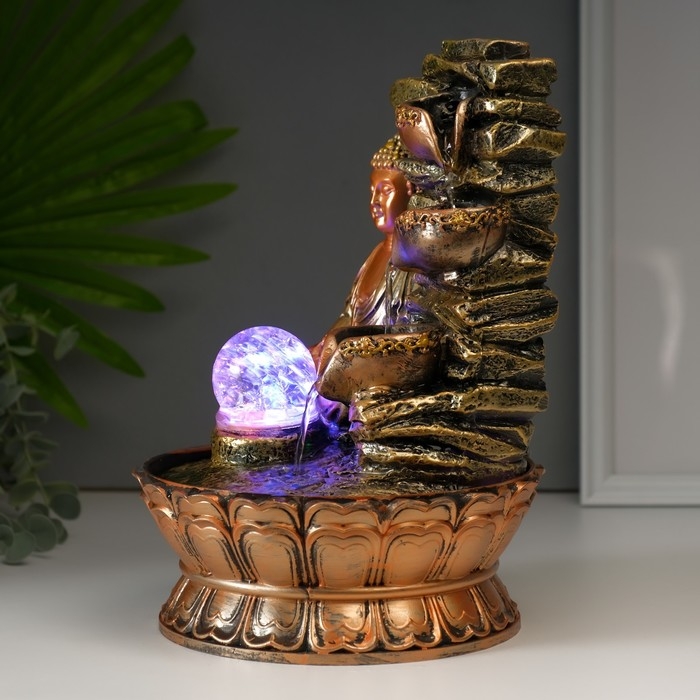 Фонтан настольный полистоун 220В "Будда у скалы с чашами" 30х21х21 см