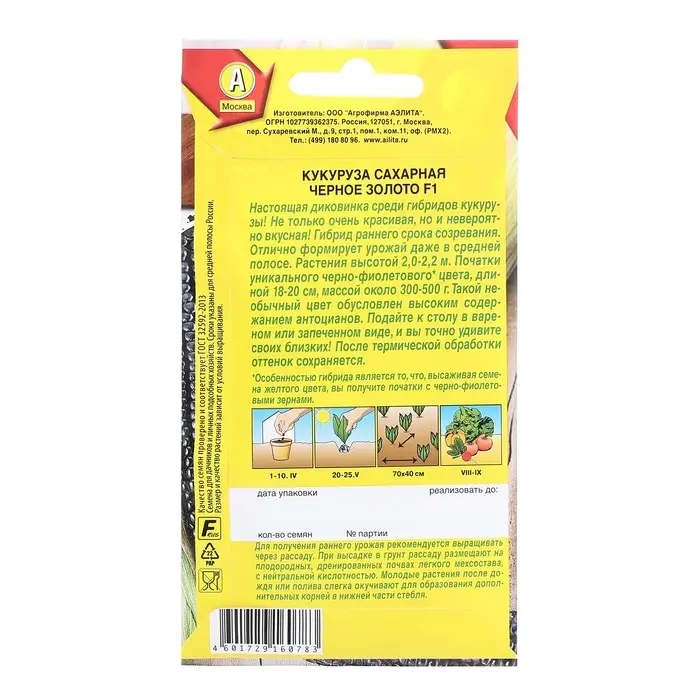 *Особенностью гибрида является то, что, высаживая семена желтого цвета, вы получите початки с черно-фиолетовыми зернами.