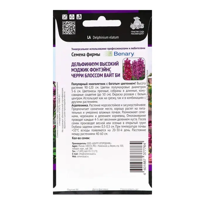 Семена цветов Дельфиниум «Магический фонтан», белый 0.05 г