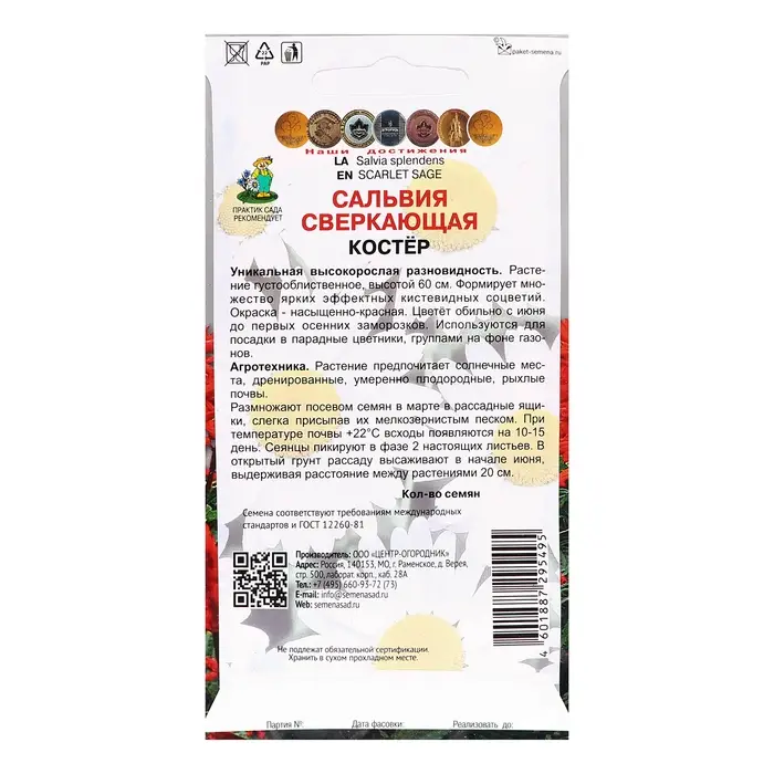 Семена цветов Сальвия сверкающая "Костер", 0,1гр.