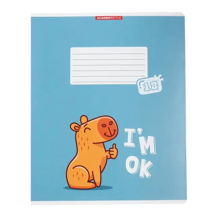 Тетрадь 18 листов в клетку "Капибара", обложка мелованный картон, ВД-лак, блок 60 г/м2, 5 видов, МИКС