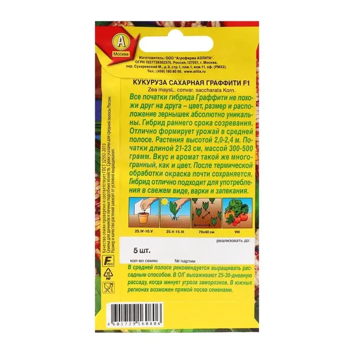 Семена гибридной сахарной кукурузы «Граффити» — ваш шаг к богатому урожаю в саду. Эта среднеспелая кукуруза отличается высокой урожайностью и сладостью зерен, что выделяет её среди других сортов. Возделывая этот гибрид в открытом грунте, вы получите свежие и сочные початки, которые станут основой для ваших кулинарных шедевров.