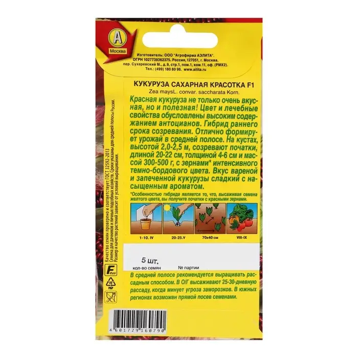 Семена Кукуруза сахарная "Красотка" F1, ц/п, 5 шт