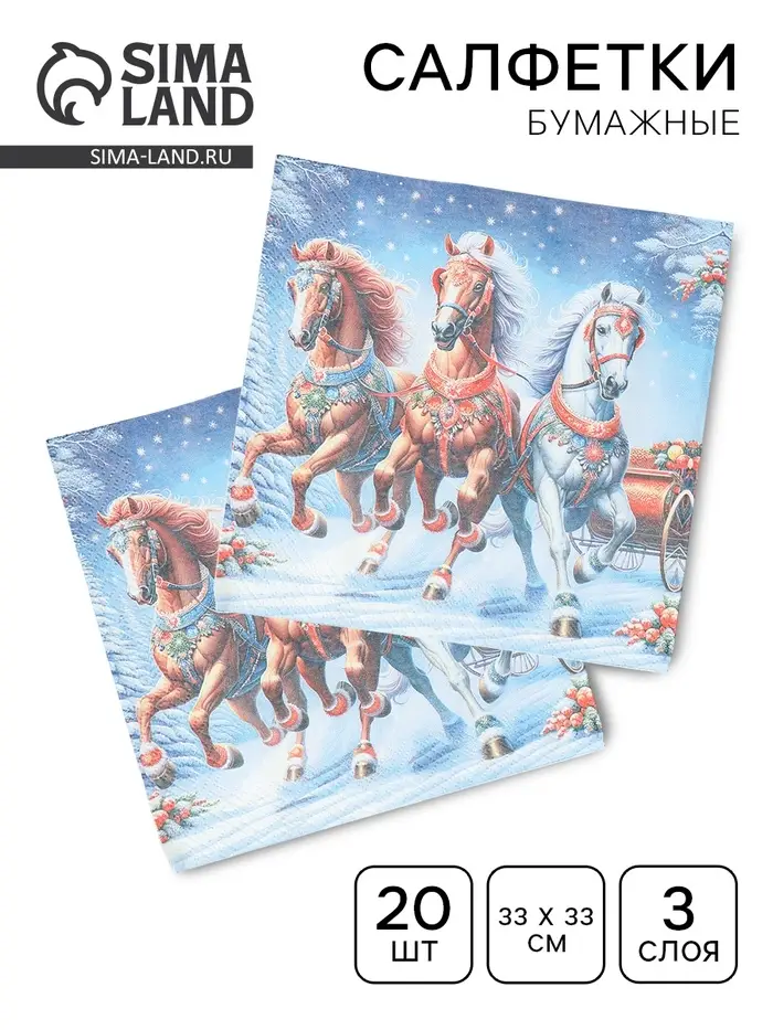 Салфетки бумажные трёхслойные «Зимняя тройка», 33х33, 20 шт