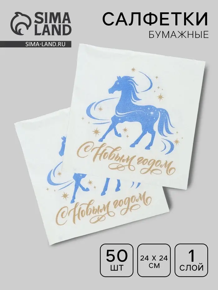 Салфетки бумажные однослойные «Счастливый год», 24х24, 50 шт