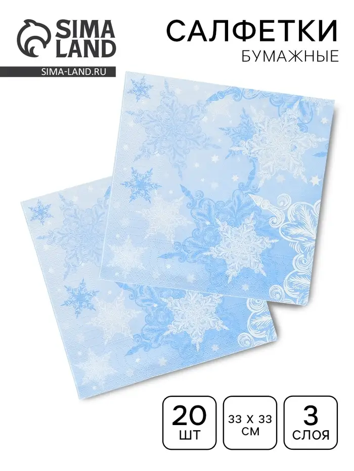 Салфетки бумажные трёхслойные «Снежный вальс» 33х33, 20 шт