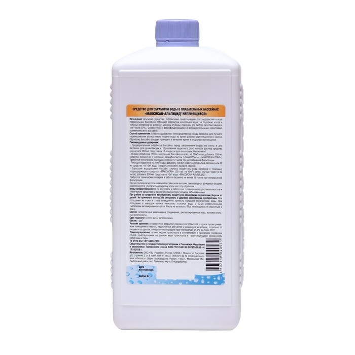 Средство от роста водорослей в бассейне Родемос "Максисан-альгицид", непенящийся, 1 л