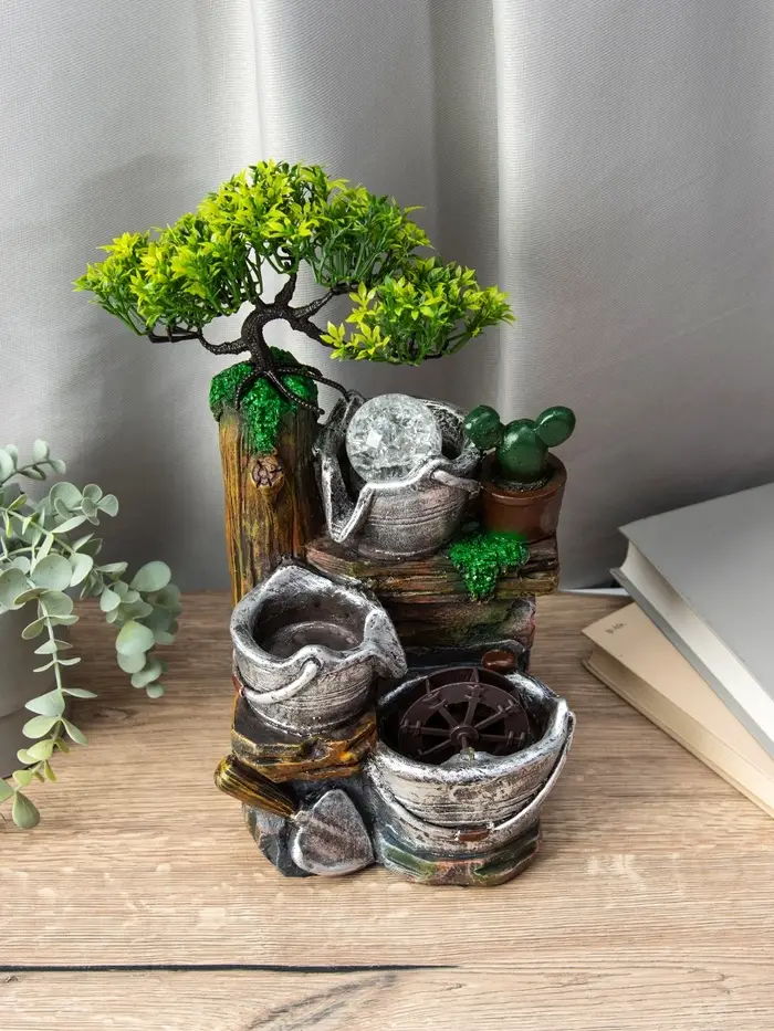 Фонтан "Ведерки под деревом" 32х15х13 см (с подсветкой)