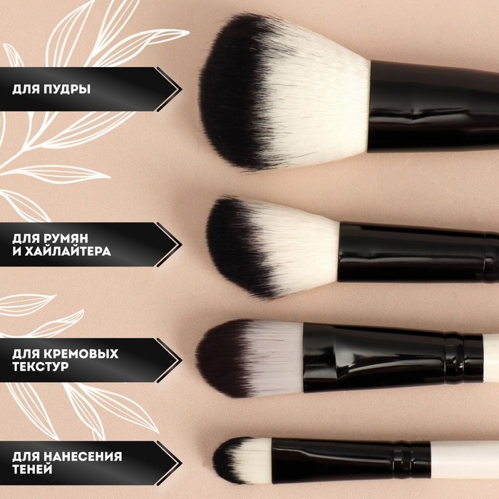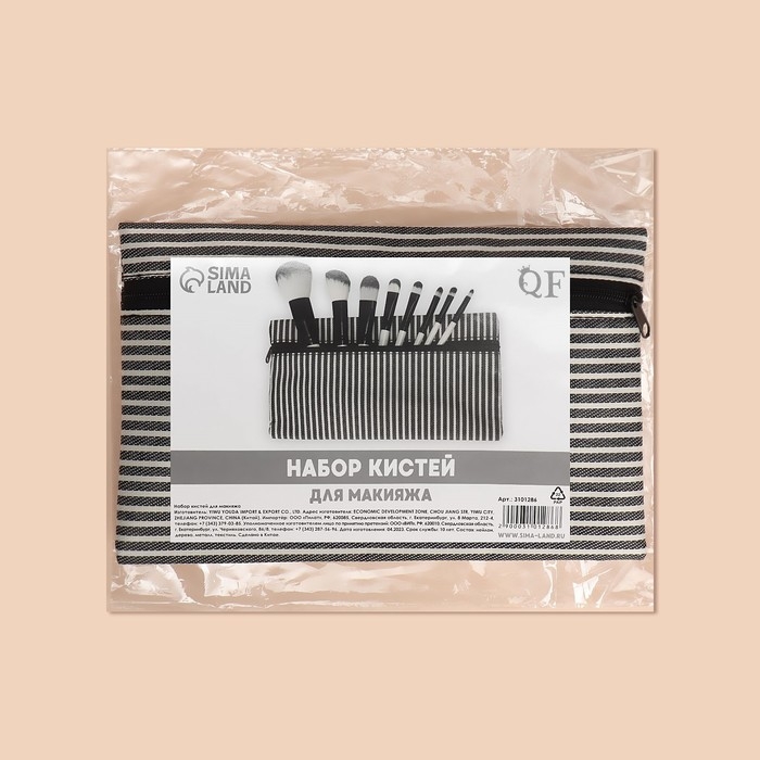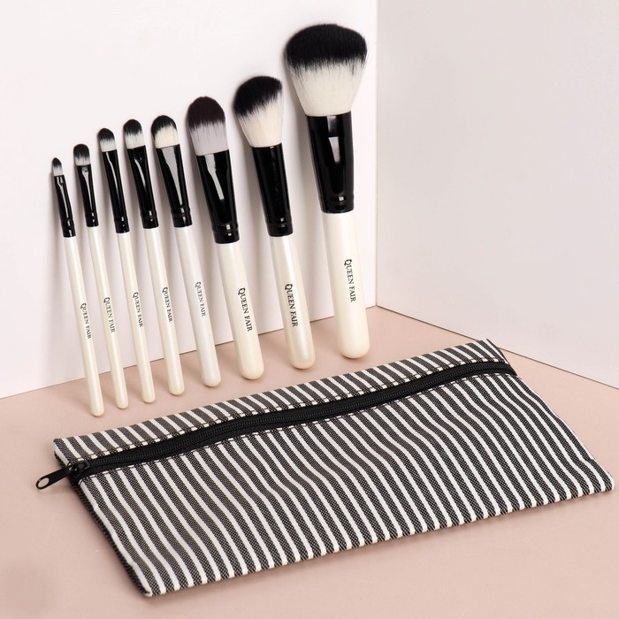 Набор кистей для макияжа «Полоски», 8 предметов, чехол на молнии, цвет белый/чёрный