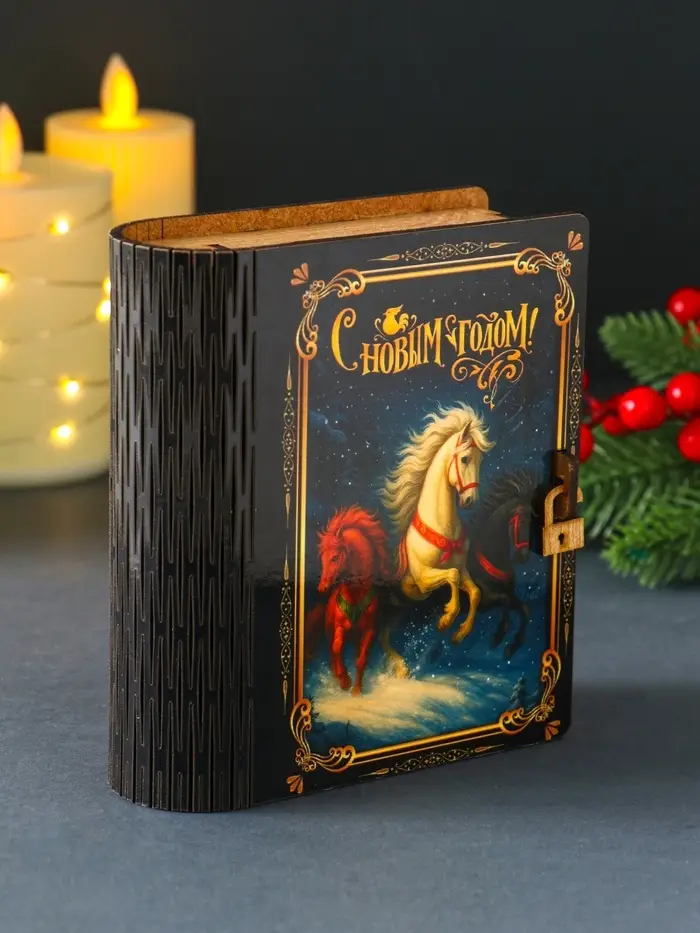 Новогодняя копилка-шкатулка "Тройка лошадей" 14х12х5 см