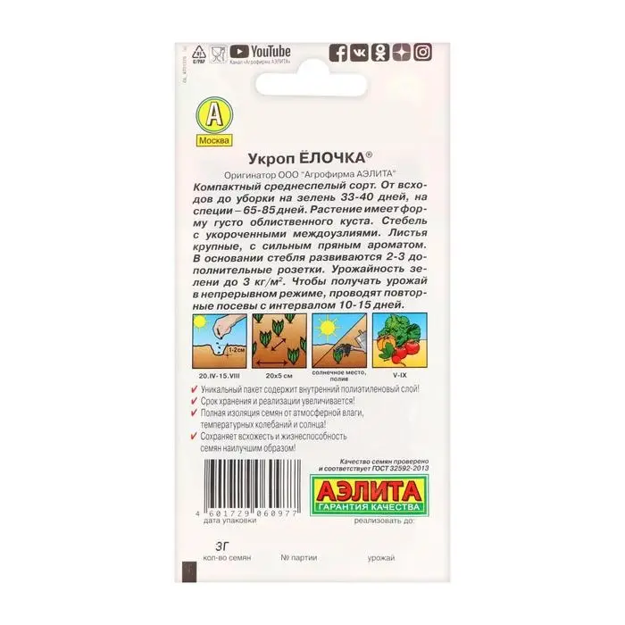 Семена Укроп "Елочка" кустовой, 3 г
