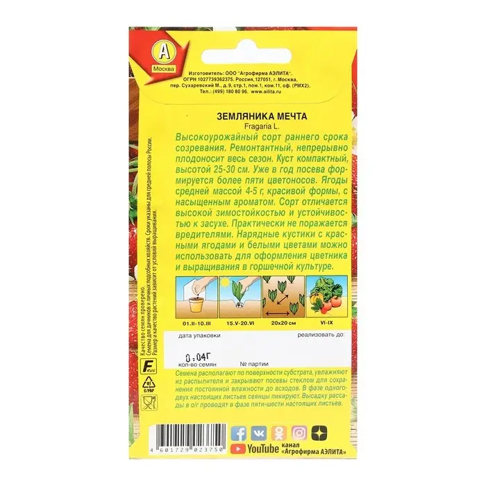 Семена Земляника "Мечта" альпийская, 0,04 г