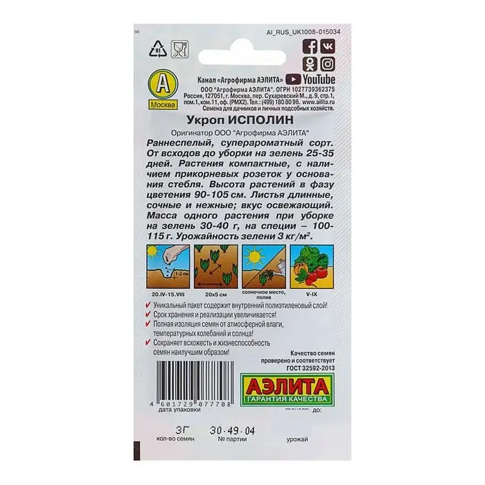 Семена Укроп пучковый Владыка, 1гр