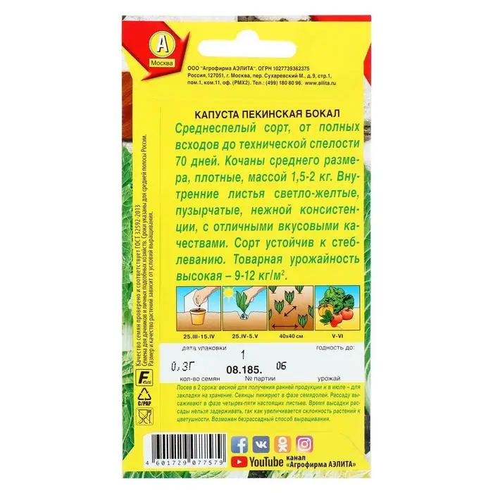Семена Капуста пекинская "Бокал", 0,3 г