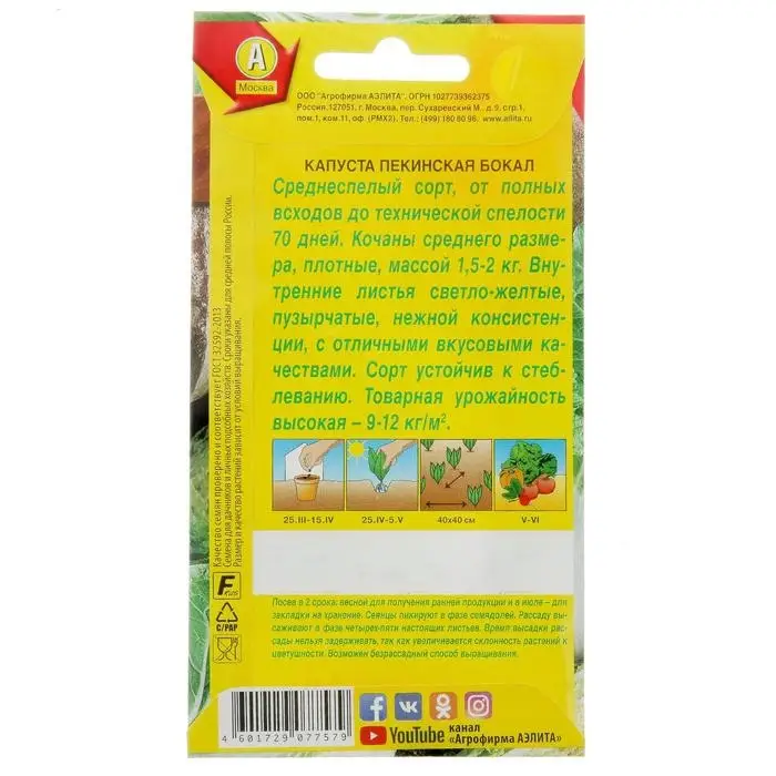 «Бокал» представляет собой среднеспелый высокоурожайный сорт, устойчивый к стеблеванию. Формирует плоды среднего размера с нежными светло-зелёными пузырчатыми листьями. Доказано, что пекинская капуста эффективна для профилактики раковых заболеваний и укрепляет иммунитет.