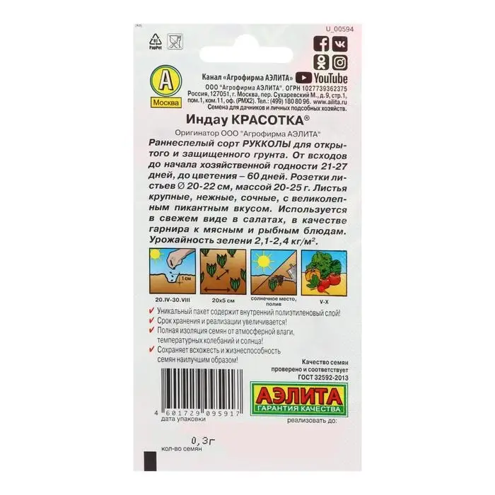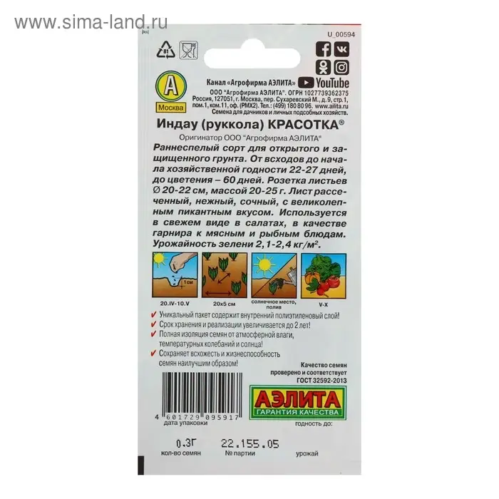Семена Индау (Руккола) "Красотка", 0,3 г