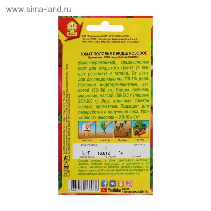 Семена Томат "Воловье сердце" розовое, среднеспелый, 20 шт