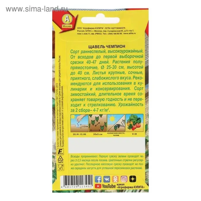 Семена Щавель "Чемпион", 0,5 г