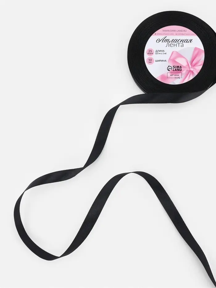 Лента атласная, 10 мм × 23 ± 1 м, цвет чёрный №39