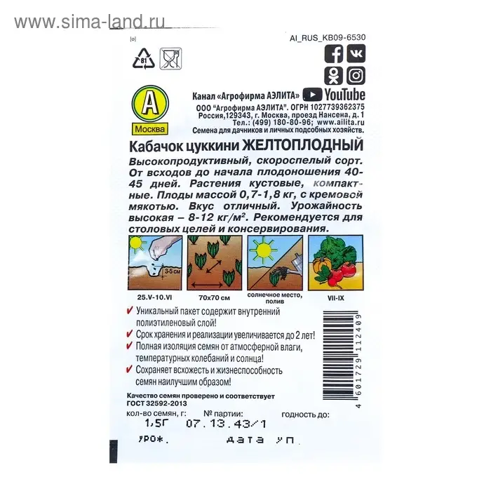Благодаря внутреннему полиэтиленовому слою пакет не пропускает влагу и увеличивает срок годности семян до 2 лет.