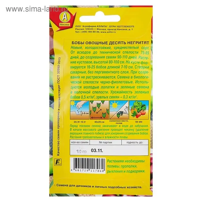 Семена Бобы овощные "Белая гвардия", 5 шт